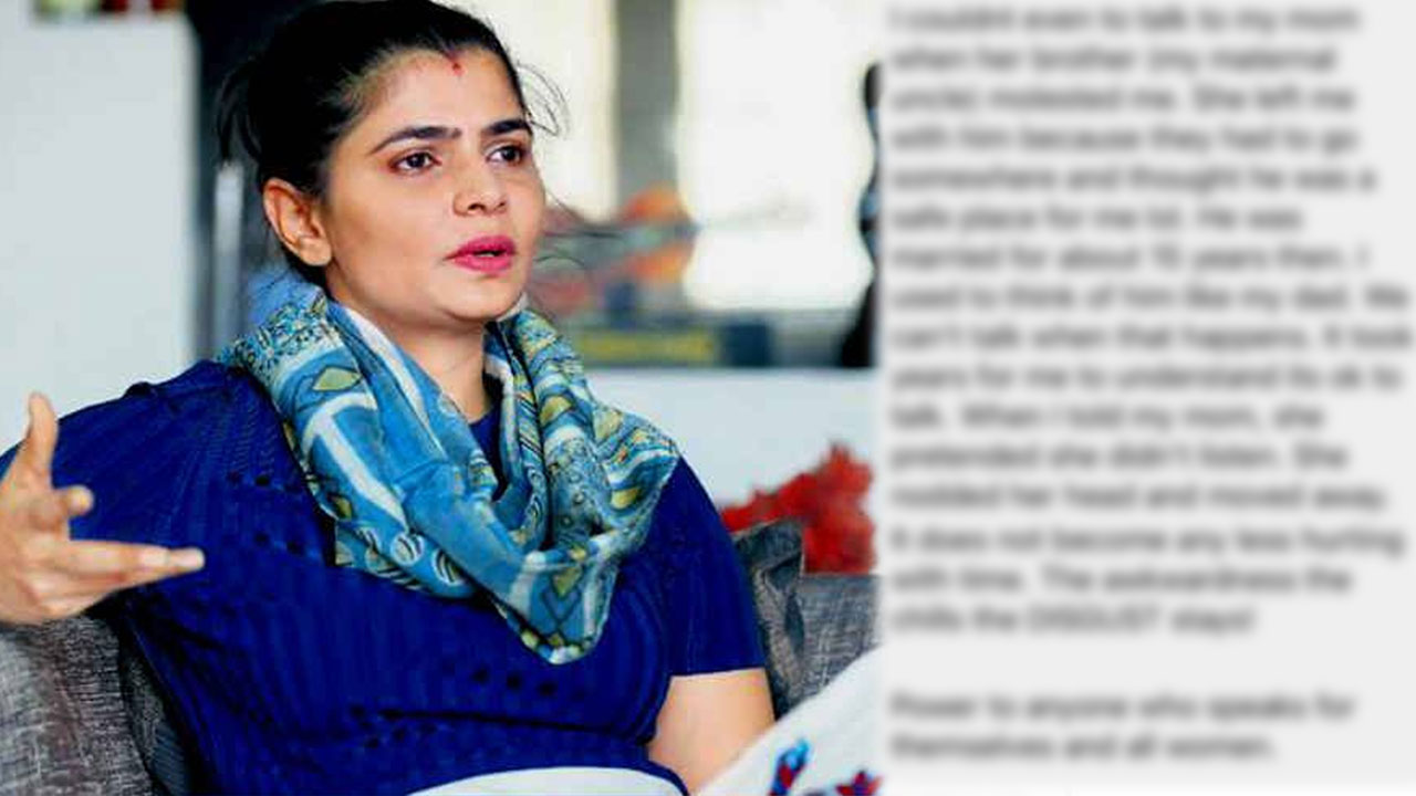 அப்படி, வலைதளத்தில் தன்னை பின்பற்றும் ஒருவர் பாடகர் சின்மயிக்கு தான் பாலியல் துன்புறுத்தலுக்கு ஆளான நிகழ்வு குறித்து எழுதி அனுப்பியுள்ளதை அவர் ட்விட்டரில் பகிர்ந்துள்ளார். அவர் பகிர்ந்த பதிவில், ”என் அம்மாவின் சகோதரரான தாய் மாமா என்னைத் பாலியல் ரீதியாக துன்புறுத்தியபோது அம்மாவிடம் இதுபற்றி என்னால் பேசமுடியவில்லை. குடும்பத்தினர் எங்காவது வெளியில் செல்ல வேண்டியிருந்தால் அவர் எனக்குப் பாதுகாப்பாக இருப்பார் என்று எண்ணி அம்மா என்னை அவருடனே விட்டுச்செல்வார். இத்தனைக்கும் அப்போது அவருக்கு திருமணமாகி 15 ஆண்டுகள் ஆகியிருந்தன. நான் அவரை என் அப்பாவைப் போலவே நினைத்தேன். நான் பாலியல் துன்புறுத்தலுக்கு ஆளாவதாக எனக்குத் தெரிந்த சமயம் அம்மாவிடம் இதுபற்றி பேச முடியவில்லை. பேசுவதுதான் சரி என்று புரிய பல வருடங்கள் ஆனது.